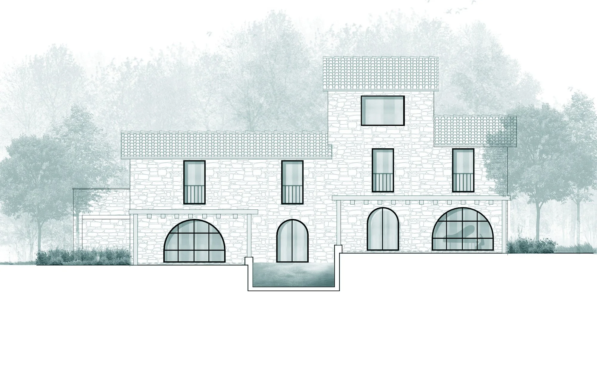 Respecting the farmhouse's character, I envisioned a blend of classic Umbrian architecture and modern comfort. Using materials from the ruin, I preserved its essence while incorporating aged stones and arches into the design.